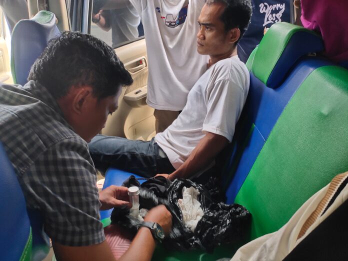 “Sekitar pukul 16.30 WITA anggota memberhentikan satu mobil dan mengamankan penumpang yang dicurigai. Setelah dilakukan penggeledahan, ditemukan satu sachet sabu beserta alat hisap di dalam tas kresek hitam milik pelaku,” jelas IPTU Nirwan.