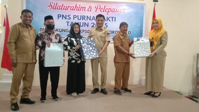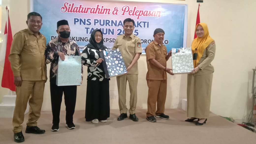 Infosiberindonesia.cim-Asisten III Bidang Administrasi Umum Kabupaten Gorontalo, Haris Suparto Tome, ST, Hadiri Silaturrahim dan Pelepasan PNS Purna Bakti dilingkungan Badan Kepegawaian Dan Pengembangan Sumber Daya Manusia Tahun 2025 , Acara kegiatan Silaturrahim dan Pelepasan PNS Purna Bakti dilingkungan BKPSDM yang bertempat di Aula Potombango BKPSDM Kabupaten Gorontalo, dilanjutkan dengan ramah tamah dan penyerahan Candra Mata kepada PNS yang Purnama Bakti dilingkungan BKPSDM Oleh Asisten III Bidang Administrasi Umum Kabupaten Gorontalo, Haris Suparto Tome, ST, kepada yakni masing-masing sebagai berikut: