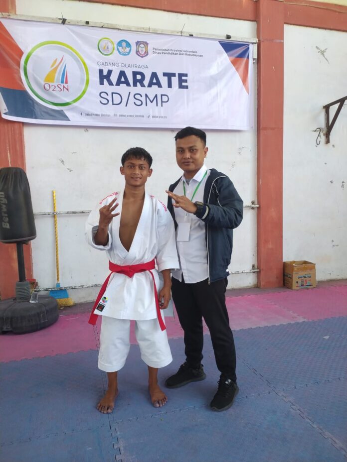 Infosiberindonesia.com-Telaga Biru- Desa Lupoyo – SMP Negeri 7 Telaga Biru Kabupaten Gorontalo 2025. Terakhir Angka tapi be3arti, diakhir angka meraih kejuaraan, Pelajar SMP Negeri 7 Telaga Biru Mohamad Yunus Mengukir meraih juara 3 karate putra tingkat pelajar diajang kejuaraan Olimpiade Olahraga Siswa Nasional ( 02SN) Tingkat Provinsi Gorontalo di bulan lalu ( 23, Juli 2025.) Yang pelaksanaannya bertempat di GEDUNG PPLP Kecamatan Kota Tengah Provinsi Gorontalo. Senin ( 06/10/2025.)