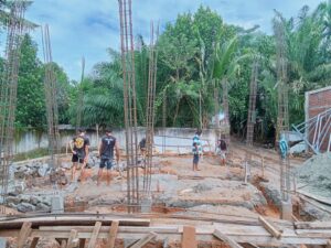Berdasarkan hasil dari pantauan sejumlah awak media ,senin 27/10/2025, terlihat pekerjaan yang menggunakan anggaran dana APBN 2025 Rp. 1.716.938.000,00 diduga tidak sesuai dengan juklak dan juknis mulai dari pemasangan kerangka baja yang awalnya menggunakan Kerangka baja Merek Taso di oplos menggunakan merek sunplus,bahkan besi ukuran 12 yang digunakan untuk coran menggunakan besi cincin ukuran 6 dan penerapan APD/K3 yang tidak di gunakan.