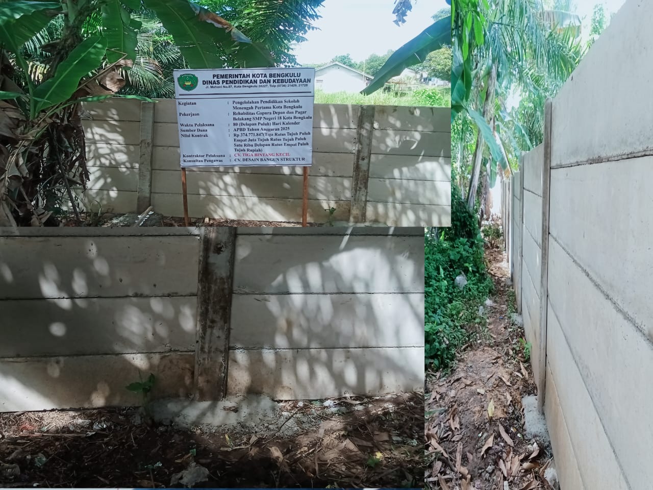 Infosiberindonesia.com Bengkulu,28 Oktober 2025 -Program Pembangunan Rehabilitasi gapura dan pembangunan pagar belakang sekolah SMPN 18 kota Bengkulu dari Dinas pendidikan dan kebudayaan kota Bengkulu yang bersumber dari dana APBD tahun 2025 dengan anggaran Rp.374.771.847 terindikasi duga’an Mencari Keuntungan dan terkesan dikerjakan asal asalan.