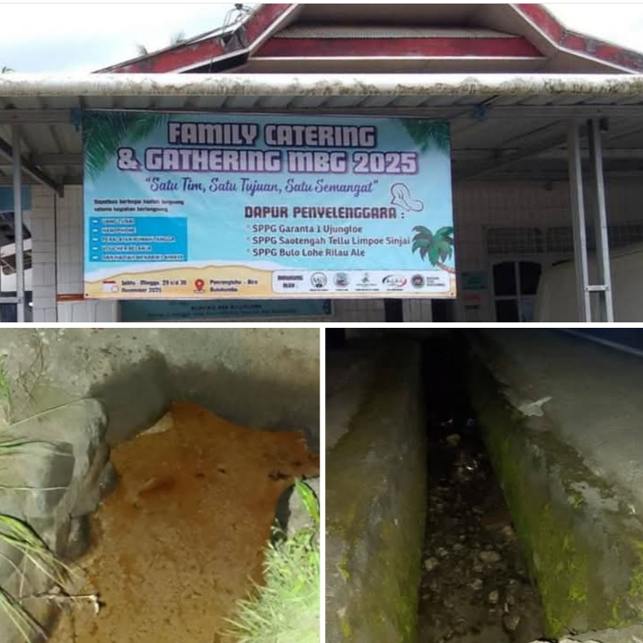 Pantauan lapangan dan dokumentasi visual menunjukkan tidak tampaknya grease trap maupun instalasi pengolahan air limbah (IPAL). Kondisi ini menguatkan dugaan bahwa limbah dapur langsung dibuang ke selokan warga, seolah-olah drainase permukiman adalah tempat pembuangan resmi kegiatan pelayanan publik.