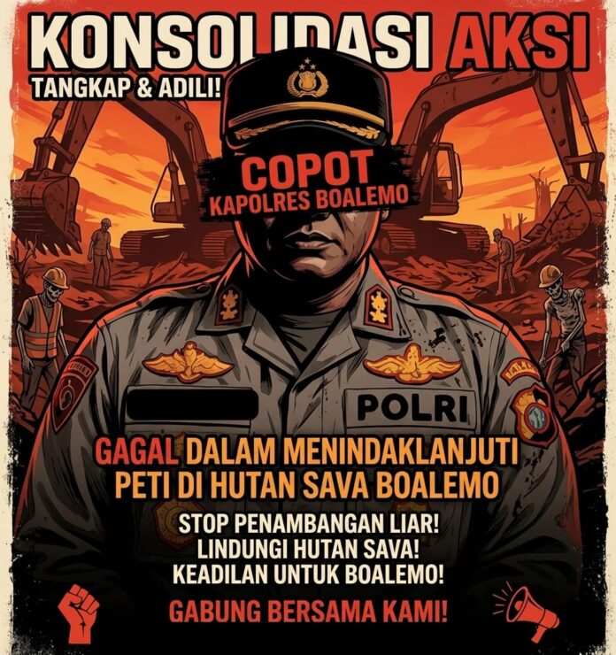 “Hutan Sapa terus dijarah secara brutal, sementara aparat memilih bungkam. Ini bukan sekadar kelalaian, ini adalah bentuk pembiaran yang tidak bisa lagi ditoleransi. Karena itu, kami tegaskan: copot Kapolres Boalemo, tidak ada Kata lain Selain Angkat Kaki Dari Tanah Boalemo,” tegas Rivandi.